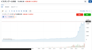 インフレと言えばトルコですが、通貨1/10、政策金利44%、インフレ率30%の現状でも株価暴落の逆で、最近の5年で4倍に暴騰しています。